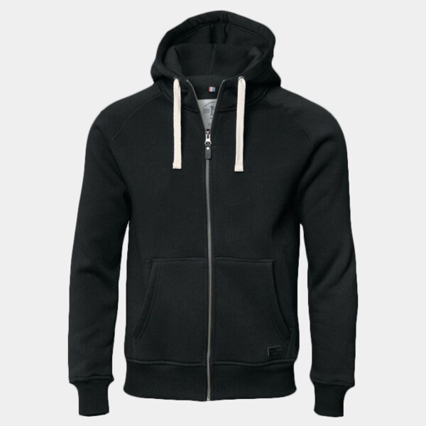 OUTSIDE SPECIFICATIONS - Hooded sweatshirt. Double layer fabric at hood. 2 classic front pockets. Rugged drawstrings. Fabric of cotton-rich blend. Leather detailing. YKK metal main zipper. INSIDE SPECIFICATIONS - Neck loop. Brushed fleece lining with short shave treatment. Tone in tone jersey tape around the zip tape. Inside loop for headphones. BSCI certified.