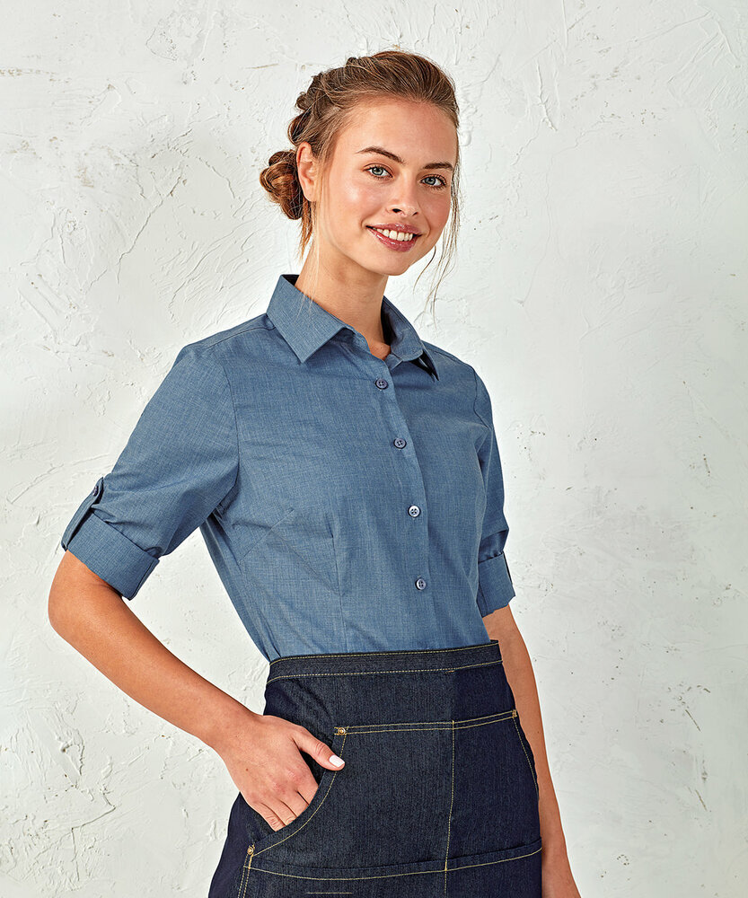 Premier Women's poplin cross-dye roll sleeve shirt PR317