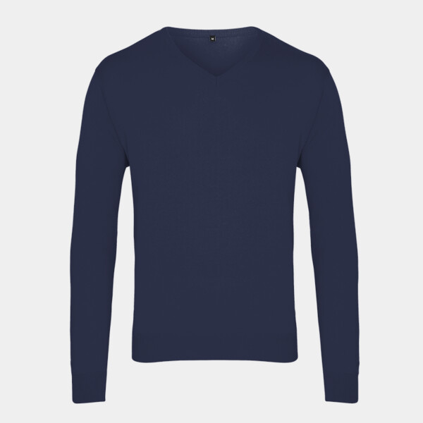 Men's long sleeve V neck sweater. Soft feel/Cotton rich yarn. Ideal for wearing with or without a tie. Fine gauge knit. Contemporary styling. Set in sleeves. 40°C Domestic wash. Size XXS, XS, S, M, L, XL, 2XL, 3XL, 4XL
