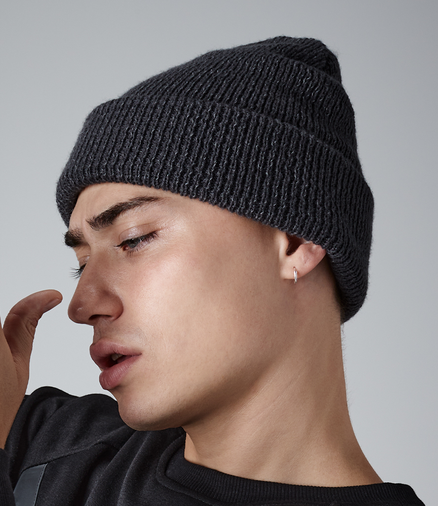 84% acrylic/16% polyester. Double layer knit. Cuffed design. Highly reflective fibres. Tear out label.