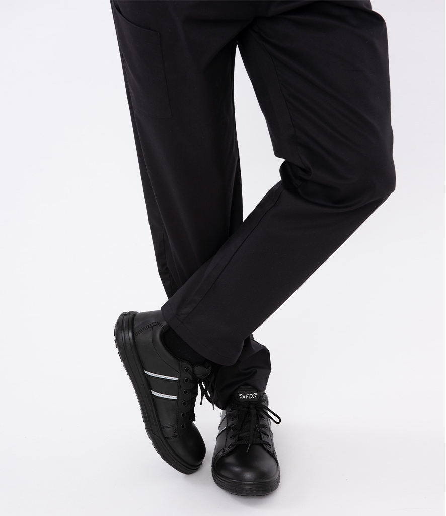 Leather upper. Breathable mesh lining. EN ISO 20345:2011 S1 SRC. Unisex style. Steel toe cap (200 joules). SRC slip resistant. Grey reflective stripe. Full length comfort footbed. Ant-static.