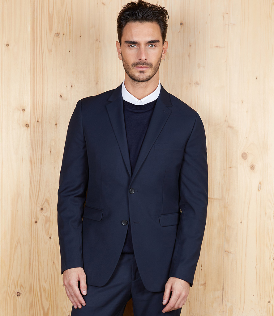 66% polyester/34% viscose twill. 210T polyester taffeta lining. Tailored collar. Buttonhole on lapel. Two button single breasted. Back vent. Left chest welt pocket. Two front pockets with flaps. Four button cuffs. Zip access for decoration. Unbranded size label. Special Order items are non-stock Items ordered from the supplier. These items are non-returnable, and lead times may vary. Co-ordinates with Trousers 03162 and Waistcoat 03166.