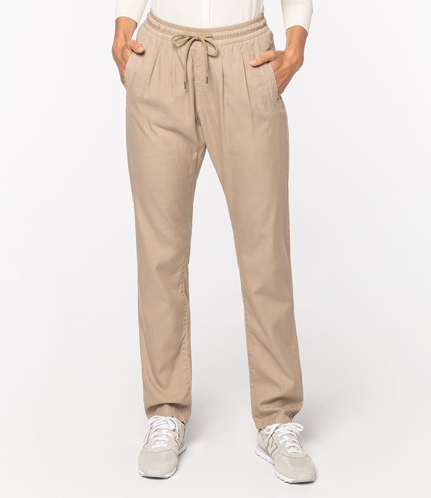 60% TENCEL™ lyocell/40% organic cotton. Special order items are strictly non-returnable. Lead times vary. Casual fit. Peached finish. Elasticated waistband with self colour drawcord and metal tips. Two side pockets. Right rear pocket. Reinforced pocket corners. Rib stitching on the front, back, sides and crotch. Tag free. Garment dyed after assembly, colours may vary slightly.