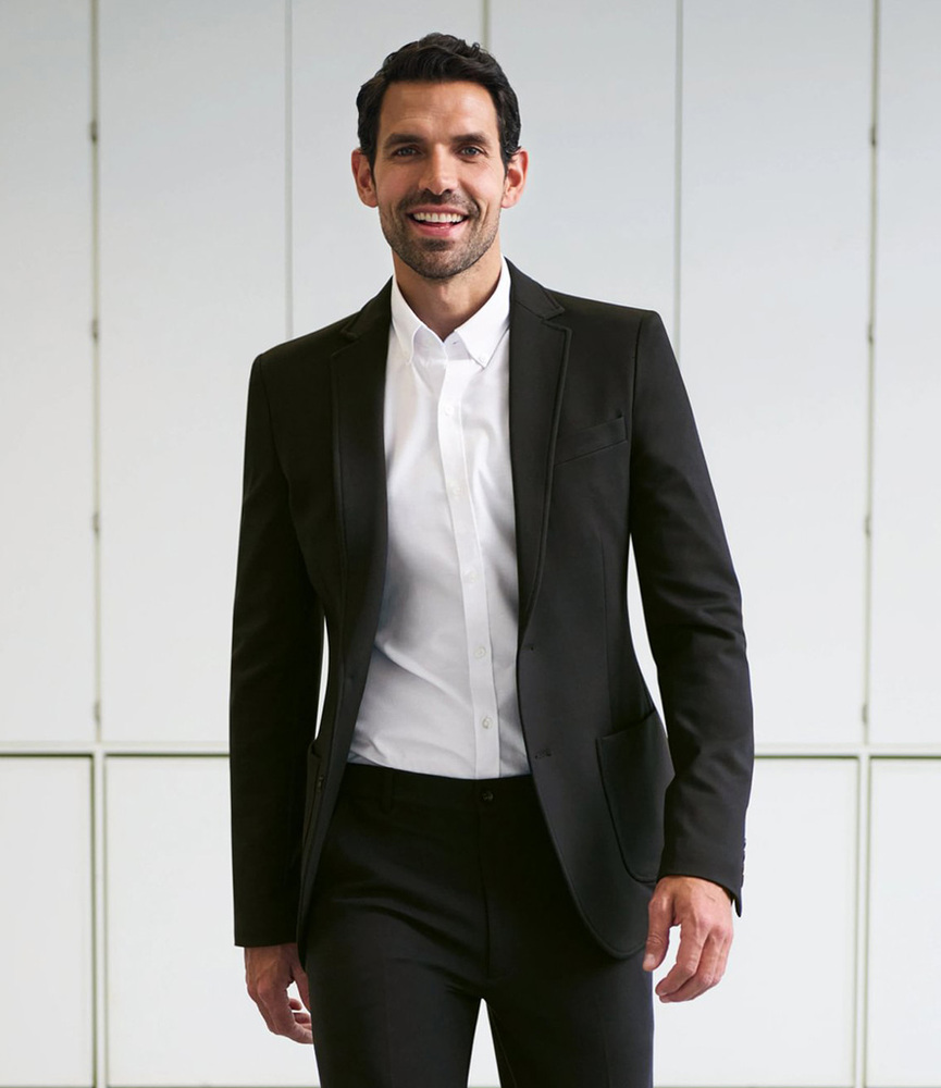 67% viscose/29% nylon/4% elastane. Half back lined. Slim fit. Two button single breasted. Left chest pocket. Two front patch pockets. Double vented back. Four button cuffs. Topstitch detail. Machine washable.