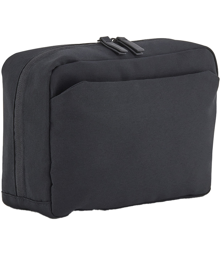 100% recycled 600D polyester. Water repellent fabric.Main zip compartment.Internal zip, mesh and slip pockets.Front zip pocket.Self colour PU zip pulls.Tear out label.Capacity 4 litres.