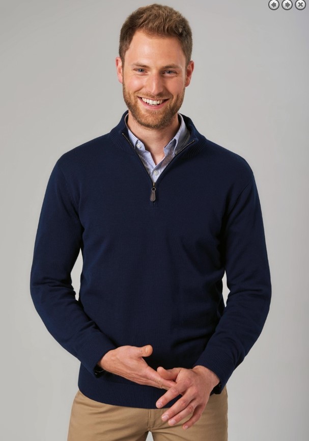 Description: 1/4 zip jumper, faux leather zip pull, ribbed neck, cuff and hem, contrast inner neck design detail.