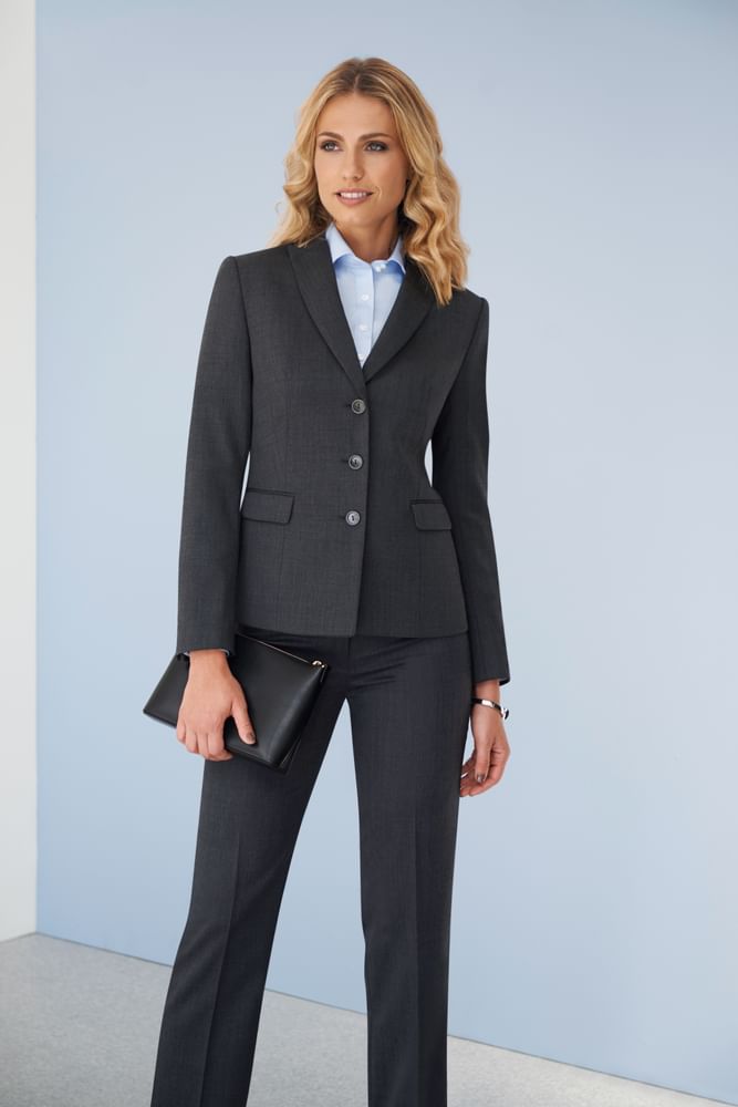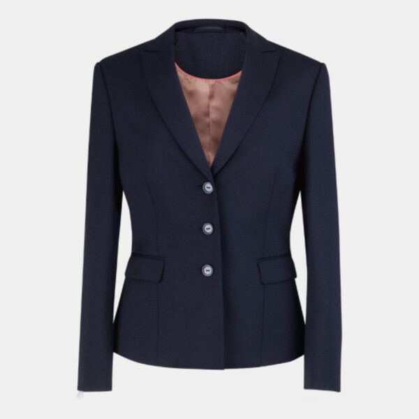 3 button tailored fit jacket, peaked lapels, 1 inside pocket, tailored back panels, centre vent